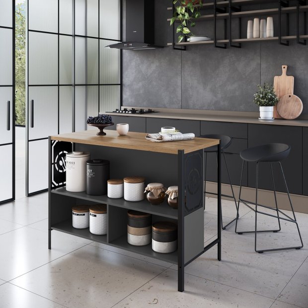 Mesa Bancada Gourmet Estilo Industrial 127cm Preto/Mel/Grafite