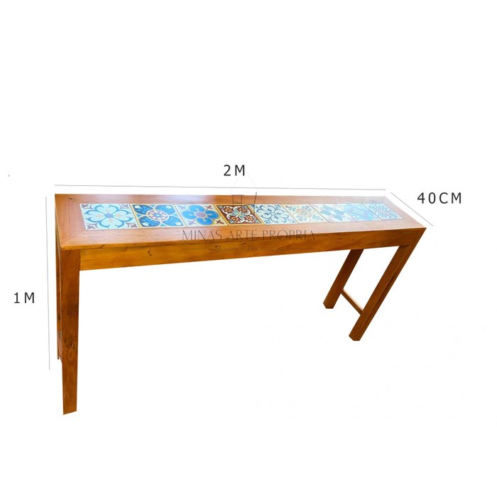 mesa bancada rústica balcão madeira demolição ladrilhos hidráulicos 2 metros MINAS ARTE PRÓPRIA banc