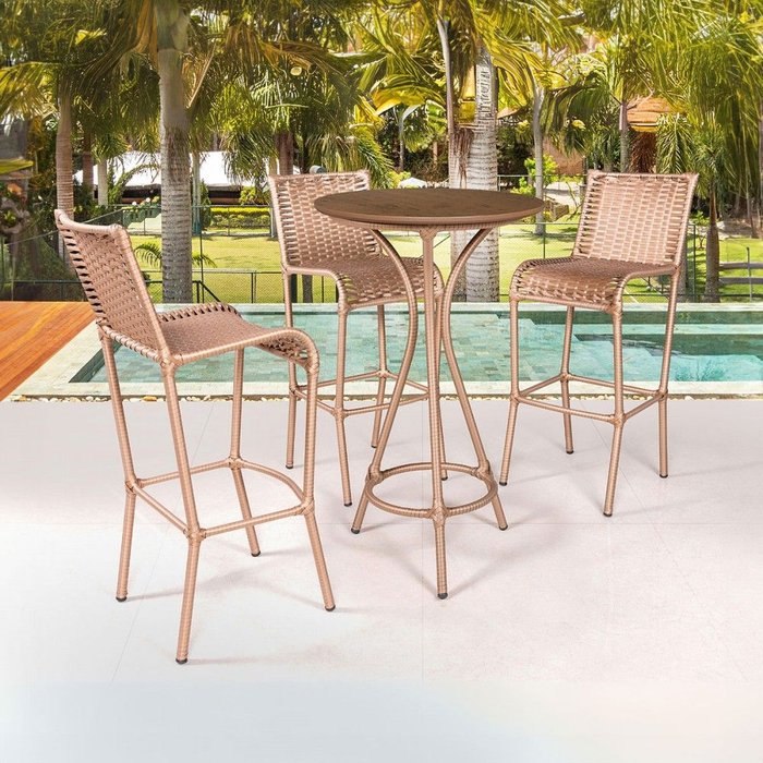 Mesa Bistrô com 3 Banquetas Odara Dourado - Wj Design Marrom Claro