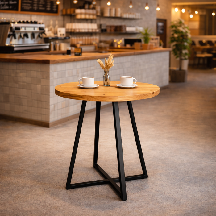 A mesa bistrô ideal para compor ambientes modernos, comerciais ou residenciais. Seu design une a beleza da madeira maciça com a resistência do ferro, resultando em uma peça versátil, elegante e durável.