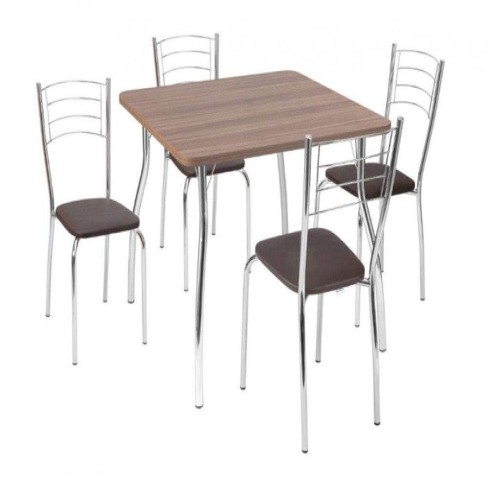 Mesa Com 4 Cadeiras Cromada Nogueira Assento Marrom Catia Fil Móveis