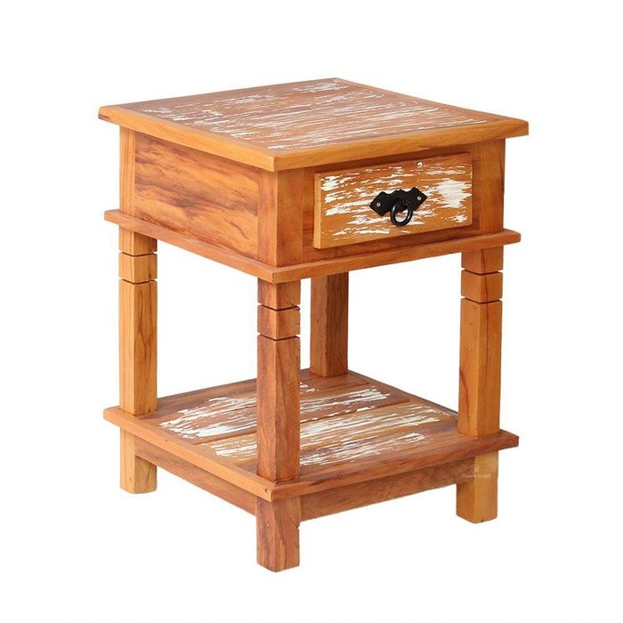 Mesa Cabeceira 40 Cm 1 Gaveta Madeira Maciça Pátina