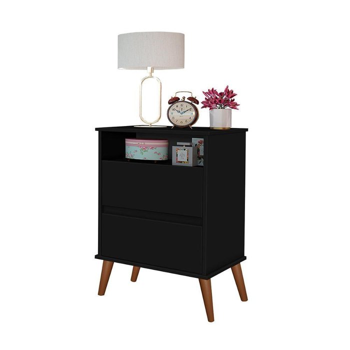 Mesa Cabeceira Onix Cor:preto Mizza Decor Preto Preto