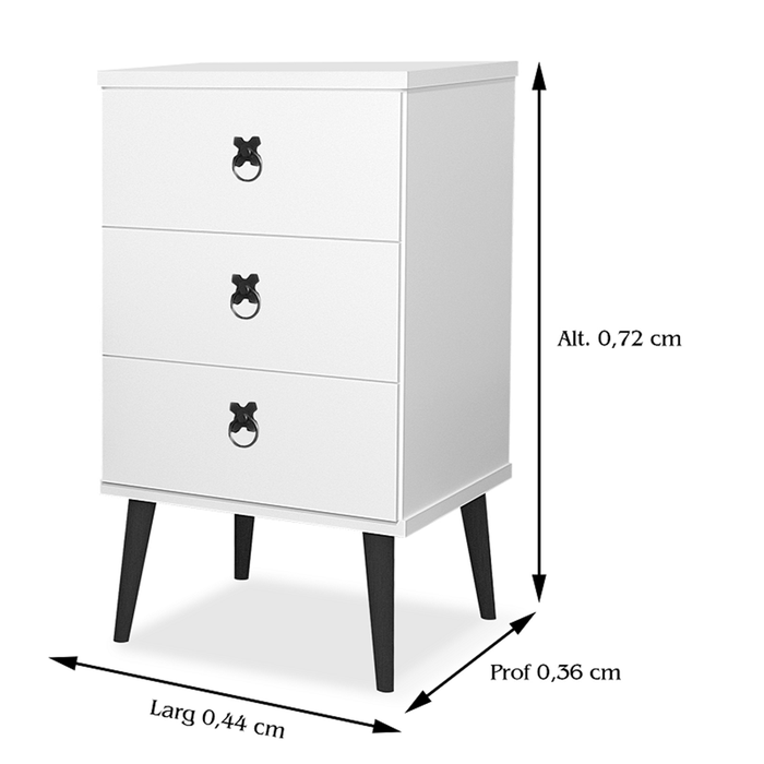 Este lindo Mesas de Cabeceira, é mais uma criação da nossa empresa, com design moderno e diferenciado, desenvolvido e elaborado para levar um novo conceito de decoração para o seu ambiente; e foi desenvolvido o kit para levar mais conforto á você na hora da compra. Características do produto: -Estrutura em MDP de 12 mm; -Tampo em MDP de 15 mm; -03 Gavetas com corrediças metálicas; -Puxadores de ferro; -Pés em Madeira Pinus. Dimensões do produto: -Altura 72 cm; -Largura 44 cm; -Profundidade 36 cm. **Imagem do produto é meramente ilustrativa** **Consultar o valor do frete na aba ´´Custos de Envio´´ ou no campo de perguntas** **Montagem por conta do cliente, recomenda-se montador** PERGUNTAS FREQUENTES – O produto vem montado? R.: O produto acompanha seu manual de montagem e instalação, mas recomendamos que a montagem seja realizado por um profissional. – Quanto é o valor de frete? Posso pagar o frete separadamente? R.: O valor do frete varia de acordo com o CEP de destino. Você pode calcular o valor do seu frete no "CUSTO DE ENVIO", abaixo das opções de pagamento, no lado direito do anúncio. palavraschave: mesinha de cabeceira,criado mudo preto,criado mundo,kit mesa de cabeceira,criado,criado mudo branco,criado mudo suspenso,mesa de cabeceira suspensa,criador mudocriado retro,criado mudo off white,criado mudo madeira,criado mudo com gaveta,criado mudo mdf,kit 2 criado mudo,criados mudos branco,moveis mdf cru criado mudo branco mdf,2 criado mudo,criado mundo retro,criado mudo suspenso branco,mesinha cabeceira mesinha de quarto,criado mudo espelhado,criado mudo com chave,mesa cabeceira off white,mesa cabeceira retro, kit criado mudo retro,mesa de cabeceira preta,criado mudo branco retro,criado mudo quarto,luminaria criado mudo, creado mudo,criado mudo mdf cru,criado mudo de madeira,criado mudo cinza,mesa de cabeceira marron,gaveta suspensa,mesa cabeceira branca,criado mudo marrom.