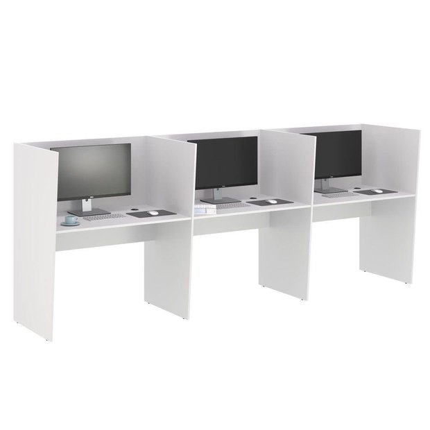 Mesa Call Center 3 Lugares Mesa de Trabalho - Branco Branco
