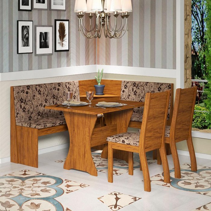 O Conjunto de Mesa Canto Alemão Fit com 2 Cadeiras Napoli , é ideal para quem quer aproveitar ao máximo seu espaço. Com design exclusivo traz comodidade e beleza ao ambiente. Pode ser utilizado tanto na sala quanto na cozinha, a mesa em madeira é uma opção mais firme e segura, as cadeiras são revestidas em tecido veloplus, assentos e encosto do banco da mesa são preenchidos em espuma, levando conforto e bem-estar.