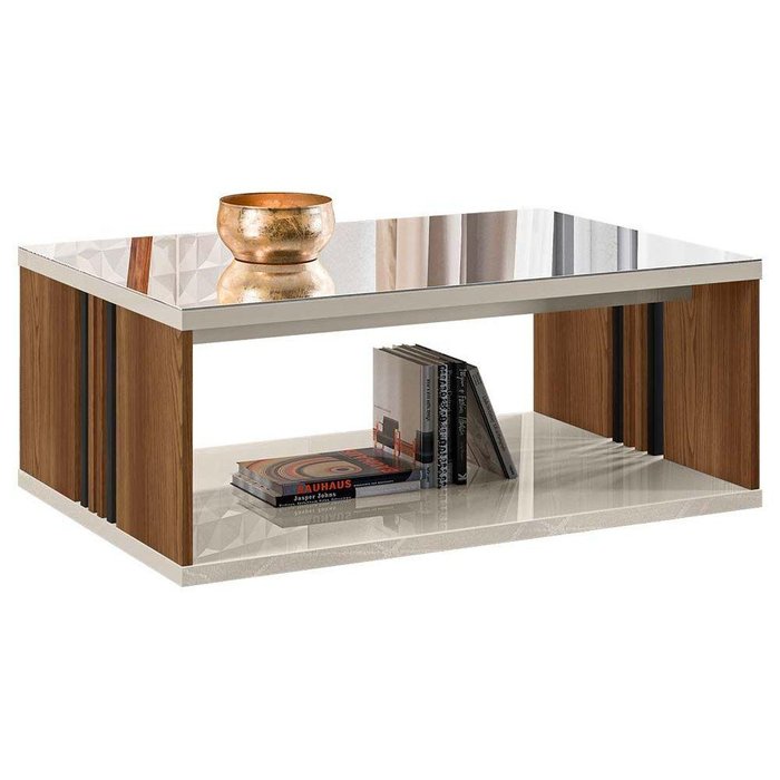 Mesa Centro Sala Bonito c/ Espelho Freijó/Off White - Linea Brasil