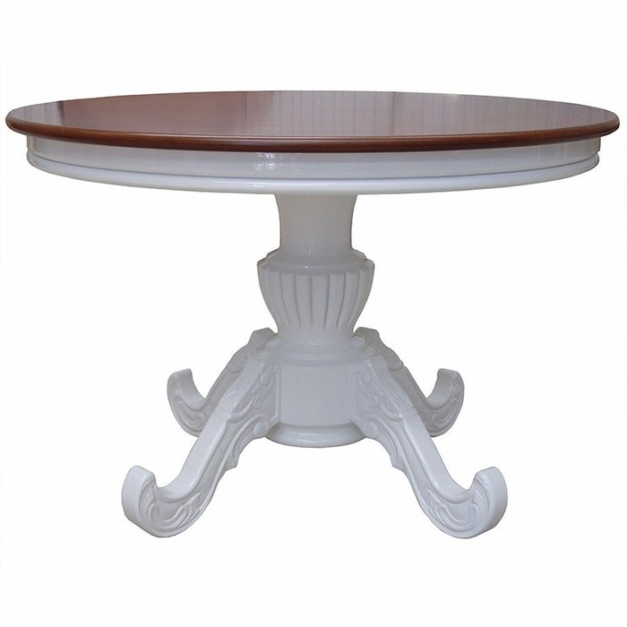 Mesa Clássica Saara 1,10 Entalhada Redonda Branco e Verniz Imbuia Soberati Mesa Clássica Saara Ental