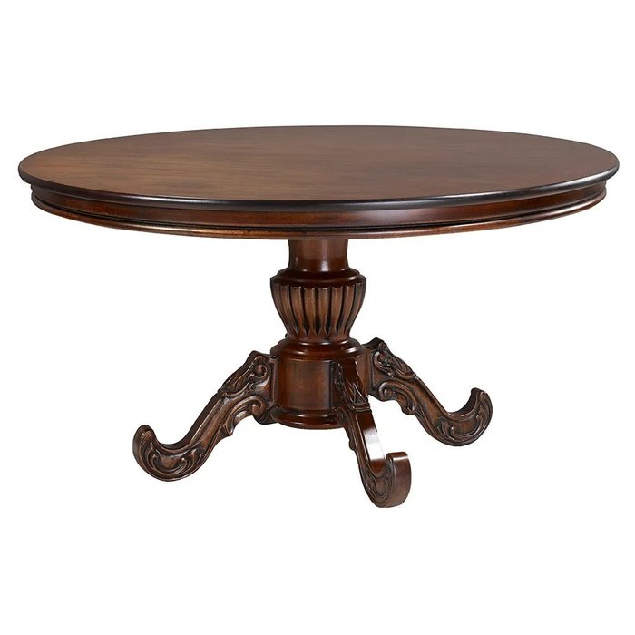 Mesa Clássica Saara Entalhada Redonda Verniz Imbuia Envelhecido 1,10 mts