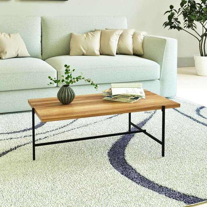 Mesa Clean de Centro Retangular de Aço e Madeira Freijo / Preto
