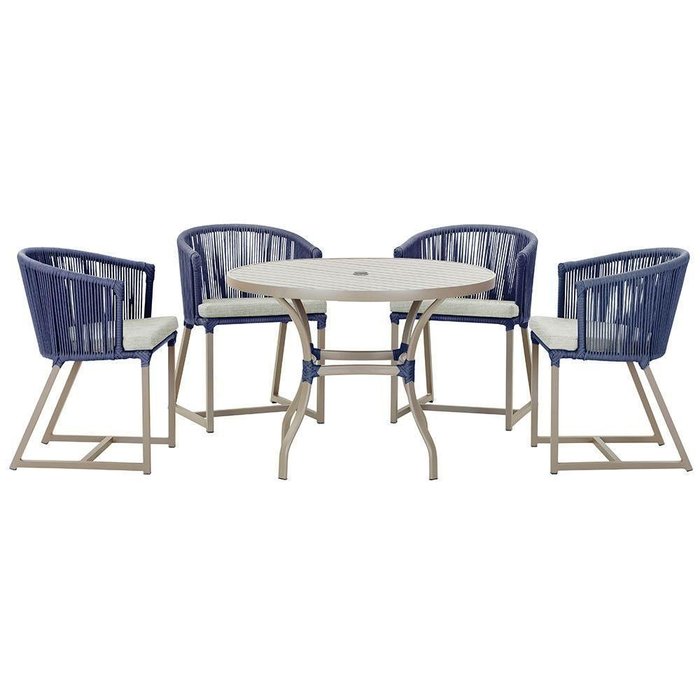 Mesa Com 4 Cadeiras E Noronha Estofado 3 Trama Original Azul