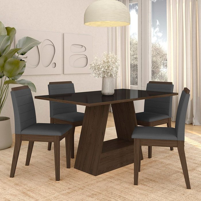 Mesa com 4 Cadeiras Nápoles 1,36 Imbuia/preto/cinza - Móveis Arapongas Imbuia/preto/suede Cinza