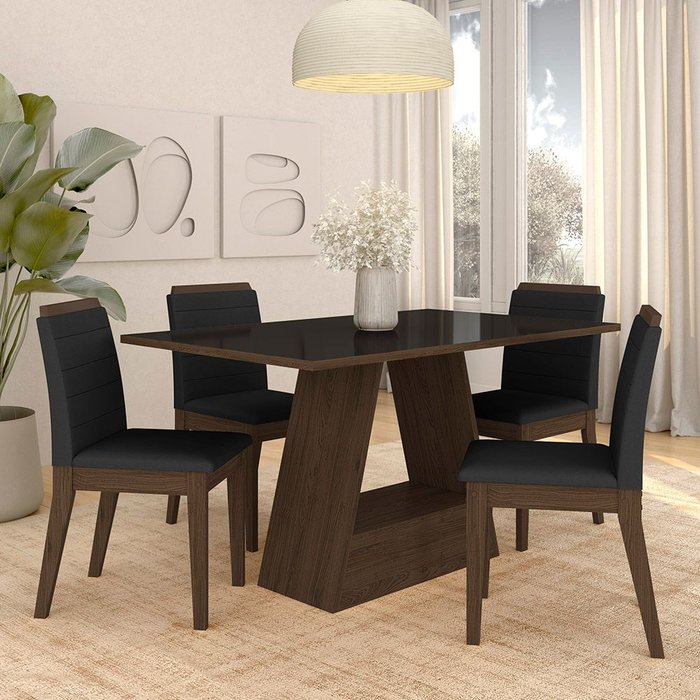 Mesa com 4 Cadeiras Nápoles 1,36 Imbuia/preto/preto - Móveis Arapongas Imbuia/preto/preto 06