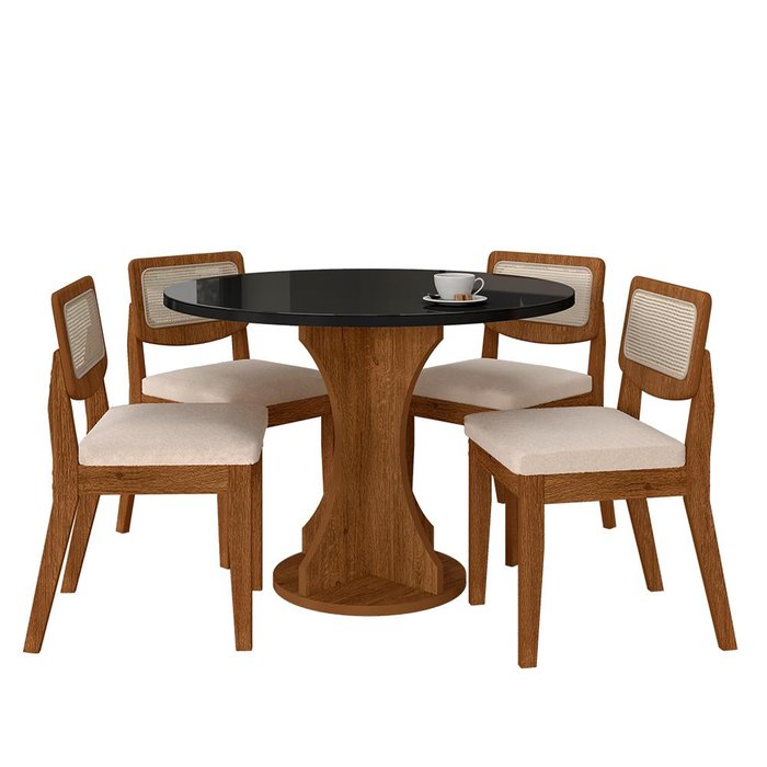 Transforme sua sala de jantar com conjunto Santorini, tampo de vidro e 4 cadeiras confortáveis. Ideal para quem busca praticidade no dia a dia, o tampo de vidro é resistente e traz um toque moderno ao ambiente.