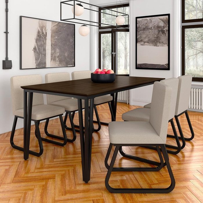 O Conjunto Sala de Jantar Aspen é uma mesa com material de qualidade e resistente que deixará a sua casa mais moderna sem perder a sofisticação. Ela é perfeita para compor decorações contemporâneas como o estilo industrial.