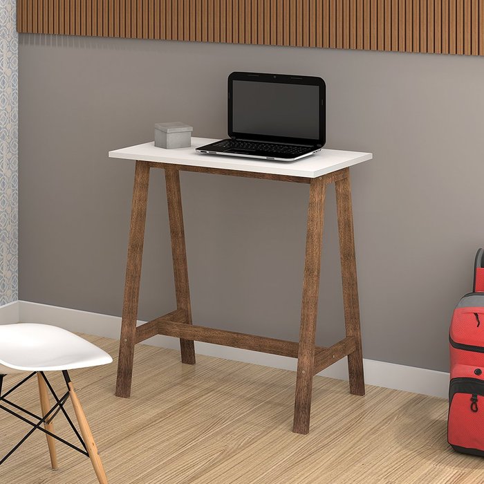 Mesa Compacta Escritório 76cm Base em Madeira - Branco