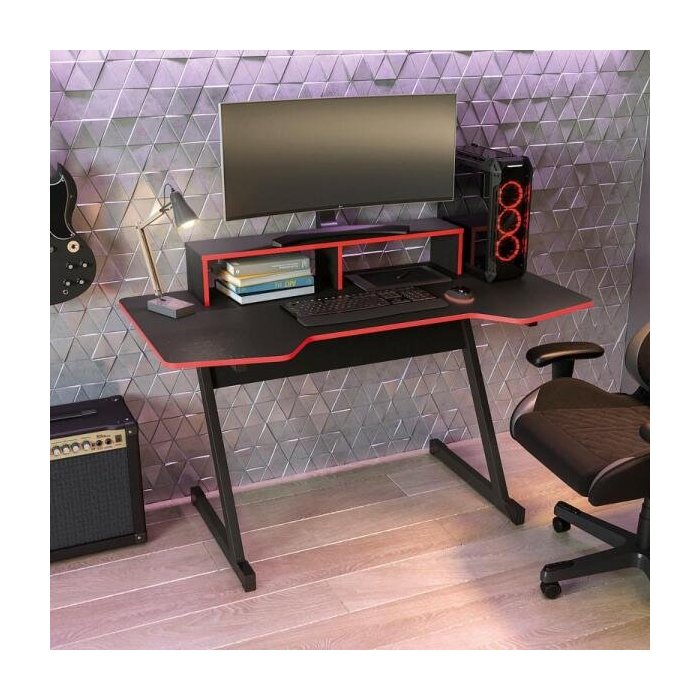 Mesa Computador Gamer 136cm Kappesberg L100 Preta e Vermelha