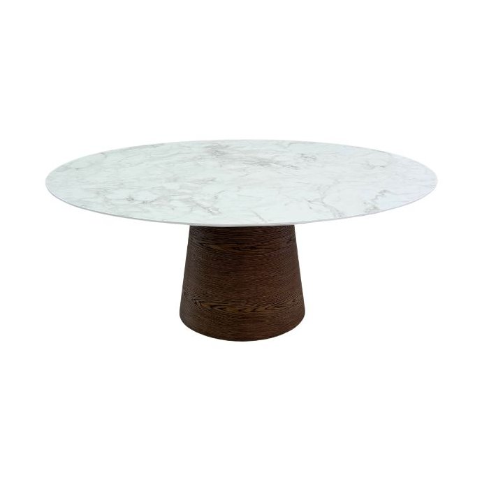 Mesa Cone Oval 180x100 cm Tampo Laca Branca Base Imbuia Horizontal