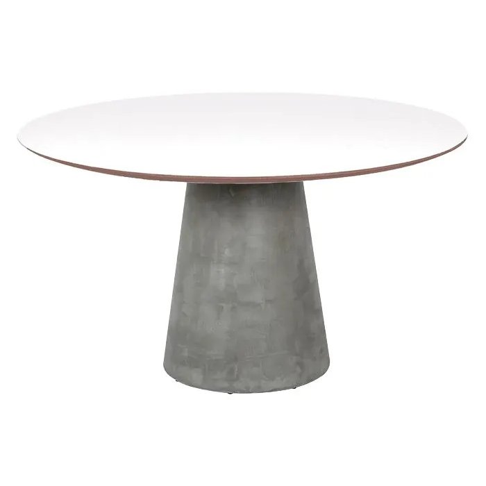 Mesa Cone Redonda em Fibra Cor Cimento Rústico Fosco - Diversos Tampos e Tamanhos - Madeira Branca