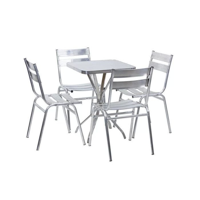 Mesa de Alumínio 60cm x 60cm Quadrada com 4 Cadeiras Fit