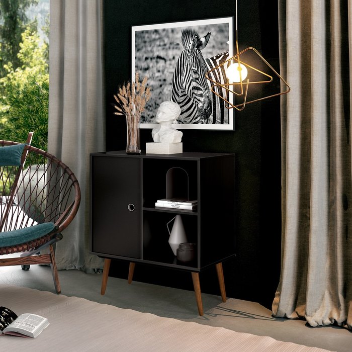 Mesa de Apoio 1 Porta 2 Prateleiras Agata Várias Cores:preto Preto