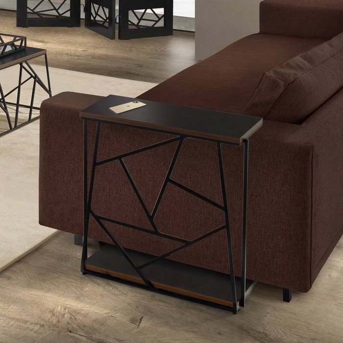Mesa de Apoio Lateral Sofá Metallica Preto com Metal Preto