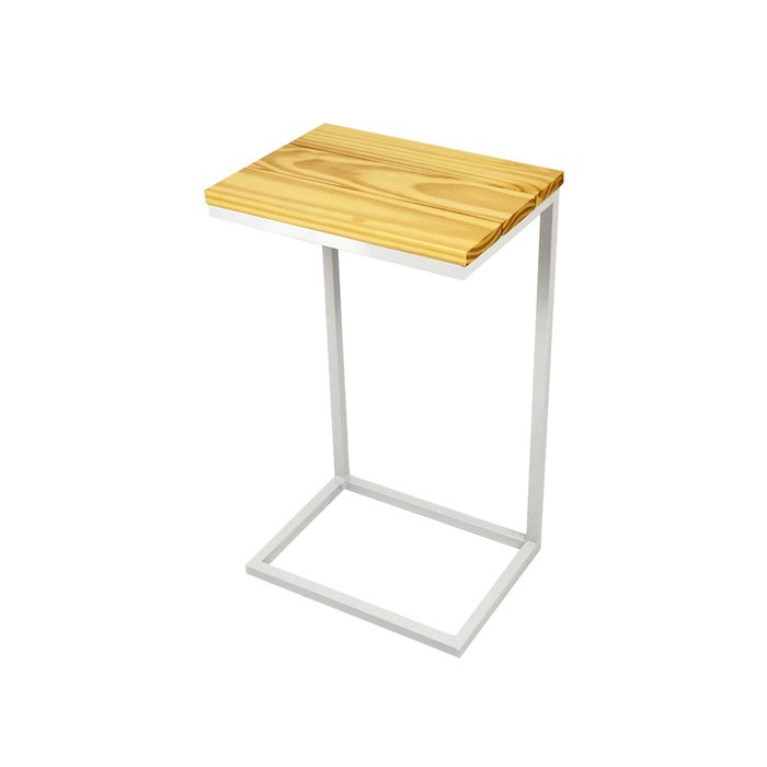 Mesa de Apoio Para Sofá Estilo Industrial Pinus com Branco