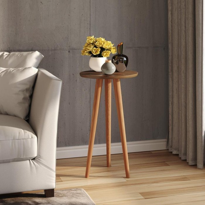 Mesa de Apoio Retrô Cissa Mesinha Canto Sala Lateral Sofá Redonda - Freijó