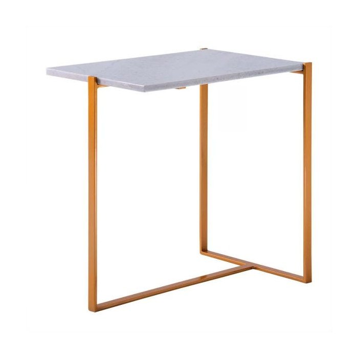Mesa de Apoio T 40cm Aço Dourado / Mármore Branco - Gran Belo