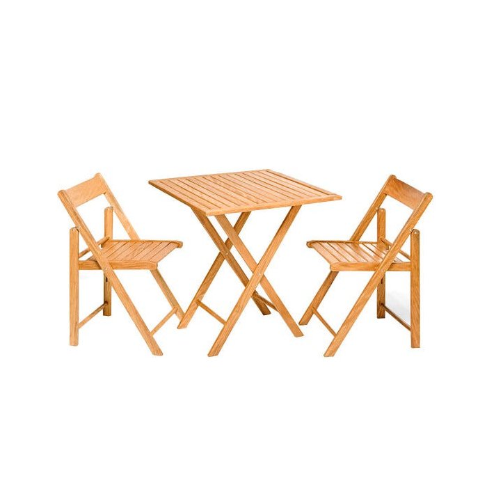 Mesa de Bar Dobrável de Madeira com 2 Cadeiras Modelo Flexbeer Natural e Furo para Guarda-Sol