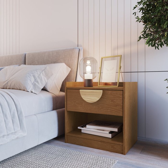 Mesa de Cabeceira 1 Gaveta 1 Nicho Ares Carvalho Vermont