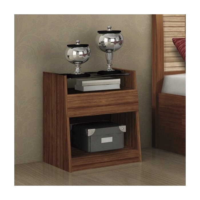 Mesa de Cabeceira 1 Gaveta com Prateleira em Vidro Capri Bianchi Móveis Marrom