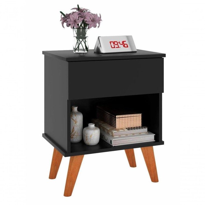Mesa De Cabeceira 1 Gaveta Duda Preto Pés Palito Jalmac - Lm Moveis