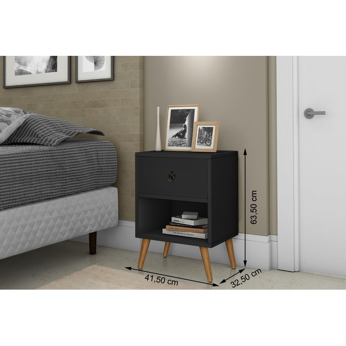Mesa de Cabeceira 1 Gaveta Preto com Nicho - Rede Móveis Preto