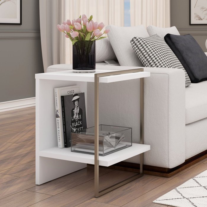 Mesa de Cabeceira 100% MDF com Metalon Infinity Nogal/Off White