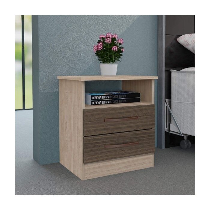 Mesa de Cabeceira 2 Gavetas e 1 Nicho Modena Albatroz Móveis Bege