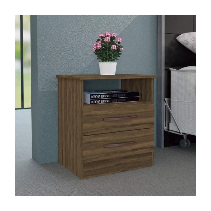 Mesa de Cabeceira 2 Gavetas e 1 Nicho Modena Albatroz Móveis Marrom