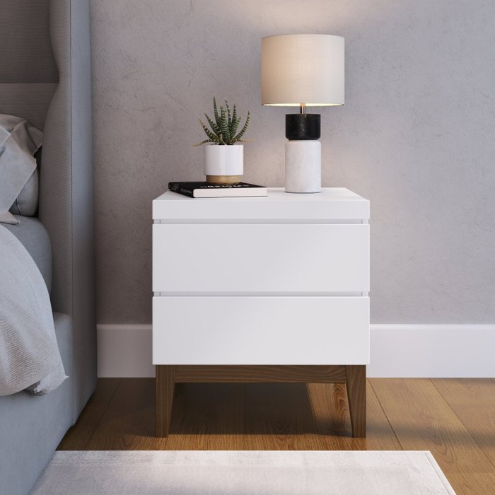 Mesa de Cabeceira 2 Gavetas Fresh Branco/Imbuia