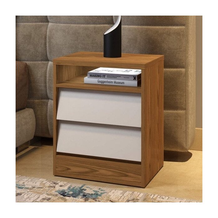Mesa de Cabeceira 2 Gavetas Liz Espresso Móveis Mel Soft/Off White