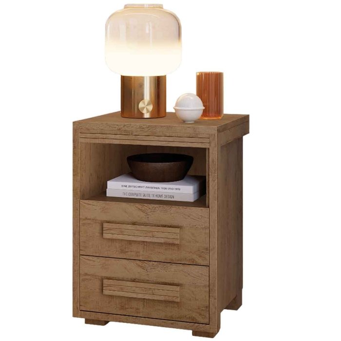 Mesa de Cabeceira 2 Gavetas Lóquio 100% Mdf - Casa Chick Castanho