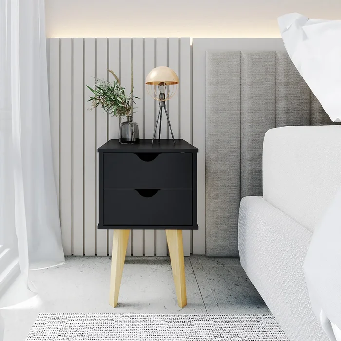 Mesa de Cabeceira 2 Gavetas Smile Preto