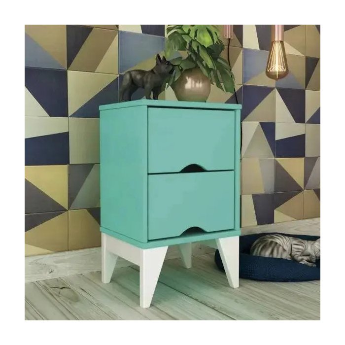 Mesa de Cabeceira 2 Gavetas Twister Tcil Móveis Azul