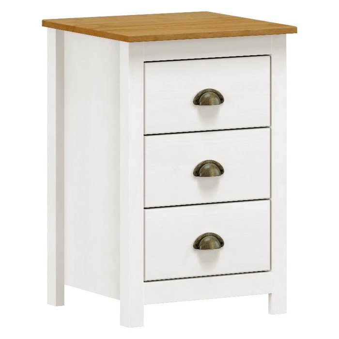 Mesa de Cabeceira 3 Gavetas 46cm Estilo Americano Lázio F07 Branco/Carvalho - Mpozenato