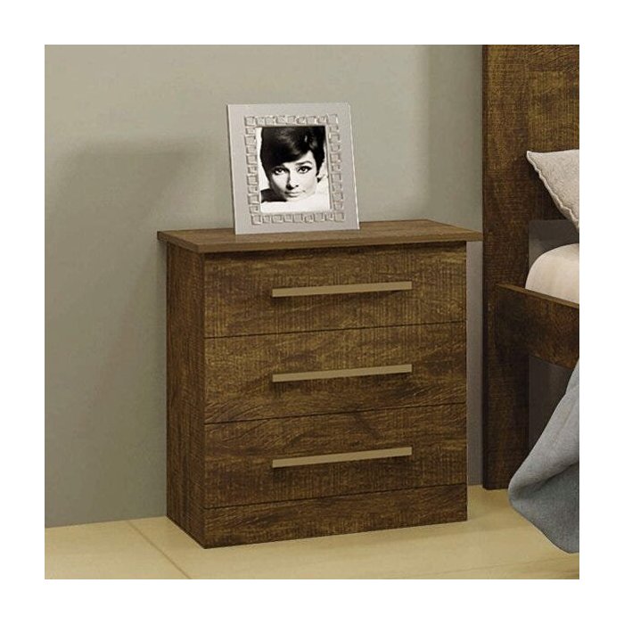 Mesa de Cabeceira 3 Gavetas com Puxadores Bronze Rubi Leifer
