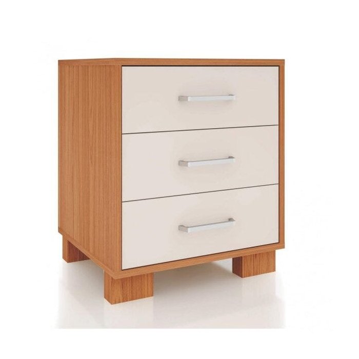 Mesa de Cabeceira 3 Gavetas Dalla Costa Freijó/Off White