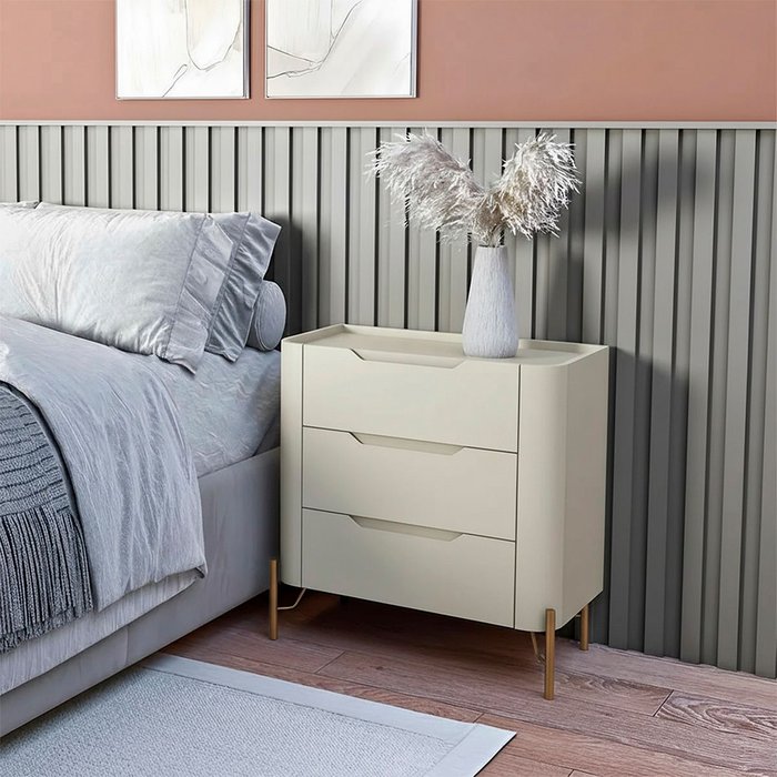 Mesa de Cabeceira 3 Gavetas 70cm MDF Luna com Dourado