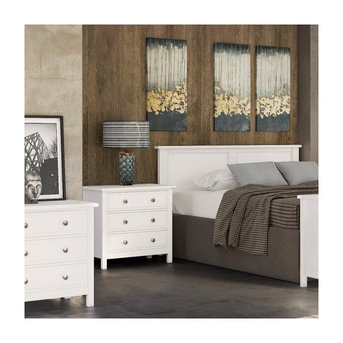 Mesa de Cabeceira 3 Gavetas Leeds Treboll Branco