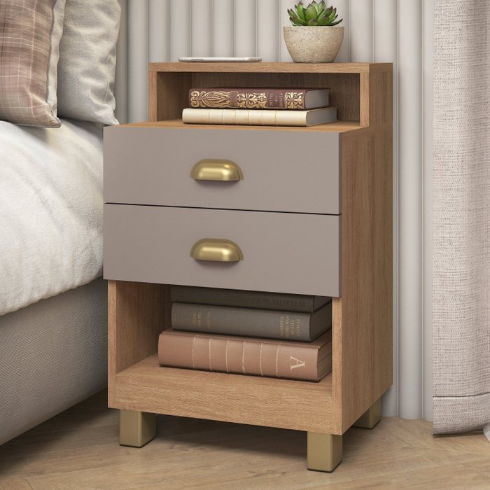 Mesa de Cabeceira 39cm X 63cm 2 Gavetas Mel/Fendi