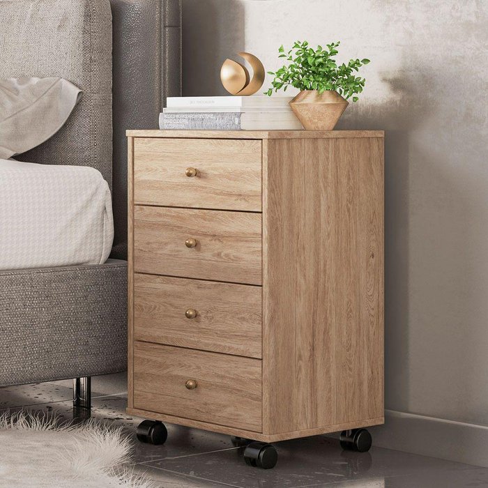 Mesa De Cabeceira 4 Gavetas Presence Demóbile Nogal Touch