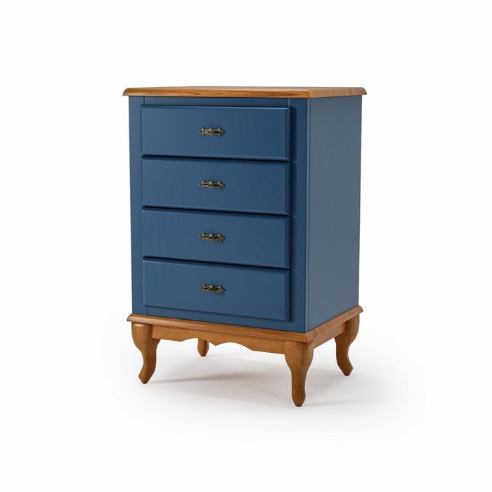 Mesa de Cabeceira 4 Gavetas Quarto Clássico Luiz Xv Azul Petróleo - Imbuia